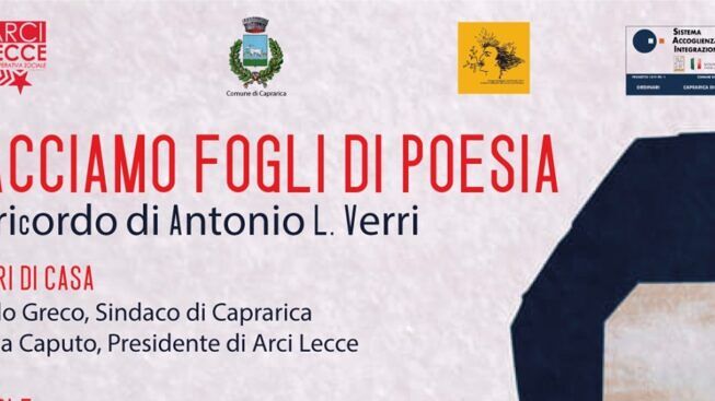 In occasione dell’anniversario della sua scomparsa, il progetto di accoglienza SAI del Comune di Caprarica di Lecce, gestito da Arci Lecce Cooperativa Sociale, dedica l’evento “Facciamo fogli di poesia” al poeta capraricese Antonio Leonardo Verri. L’appuntamento, realizzato in collaborazione con il Comune di Caprarica, è in programma per il prossimo 9 maggio.