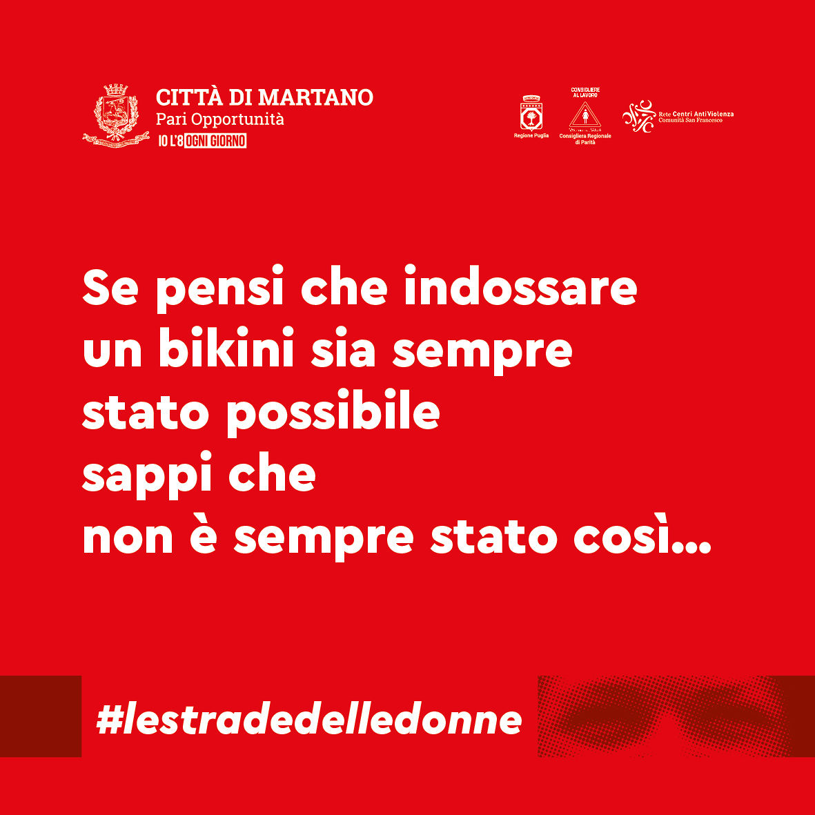 «Le strade libere le fanno le donne che le attraversano». È questo lo slogan dell’iniziativa che andrà in scena a Martano, nel cuore della Grecìa salentina in occasione della Giornata Internazionale contro la violenza sulle donne. Dal 25 novembre le strade della cittadina si tingeranno di rosso nel nome di donne che sono state un esempio di coraggio e ribellione contro la violenza, in tutte le sue drammatiche sfaccettature, e la discriminazione.