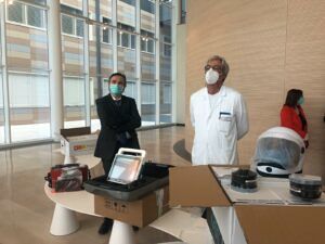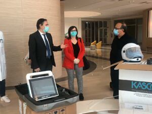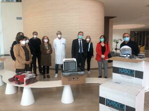 Nello specifico sono stati consegnati un Most-Care, il primo monitor in grado di fornire in tempo reale un’informazione completa sullo stato emodinamico del paziente, utilissimo nella fase emergenziale e non; un massaggiatore cardiaco automatico indispensabile in caso di blocco cardiaco e caschi respiratori fondamentali nei reparti infettivi o nell’area di isolamento da coronavirus.