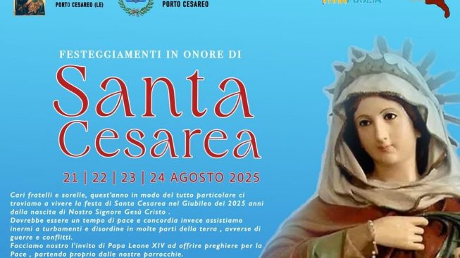 Dal 21 al 24 agosto 2025 la comunità di Porto Cesareo si stringe attorno alla propria Santa Protettrice: Santa Cesarea. Un evento molto atteso, che unisce devozione religiosa, tradizione popolare e un ricco programma di eventi civili e musicali, con ospiti d’eccezione e attività per tutti.