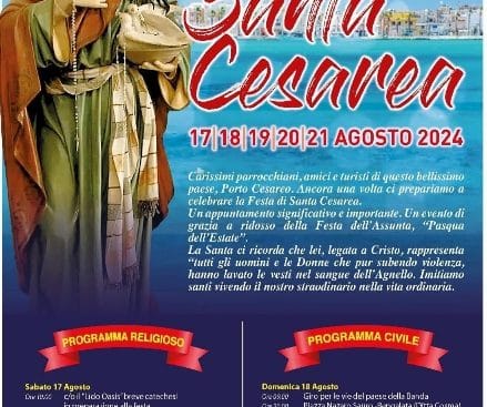 Porto Cesareo si prepara a vivere cinque giorni all’insegna della tradizione e del divertimento. Dal 17 al 21 agosto, la località rivierasca ospiterà la festa in onore di Santa Cesarea, un appuntamento atteso da tutta la comunità.