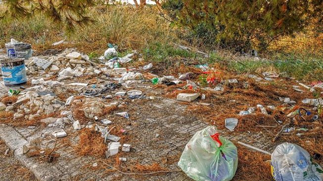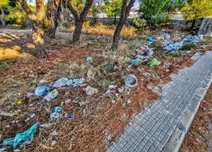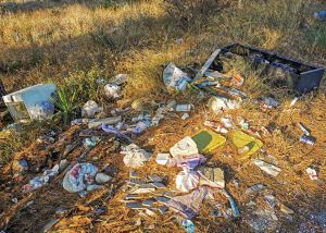 Un tappeto di rifiuti non solo di plastica ai bordi della strada ricorda come l’incuria può vincere sulla bellezza.