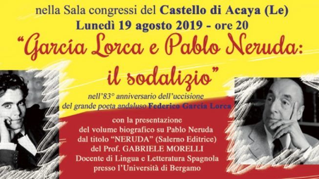 Non è solo per il grande debito culturale e umano che il mondo ha nei confronti del poeta cileno e del poeta spagnolo che l’evento è stato organizzato. È in occasione dell’83esimo anniversario dell’uccisione del poeta Federico Garcìa Lorca, il 19 agosto del 1936, che si terrà l’incontro, che vedrà anche la presentazione di “Neruda”, ultimo volume biografico su Pablo Neruda, a firma di Gabriele Morelli, docente di Lingua e Letteratura spagnola all’Università di Bergamo.