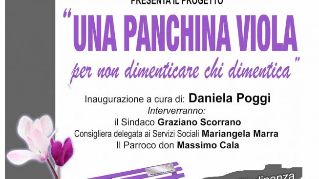 A partire da domenica 10 settembre saranno inaugurate, le panchine viola “Per non dimenticare chi dimentica“.