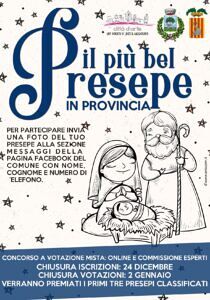 Come illustra nel dettaglio, il primo cittadino: “Il concorso avrà due sezioni: locale e provinciale. Saranno premiati, dunque, il miglior presepe della nostra città ed il miglior presepe della provincia di Lecce. Saranno accese le luminarie natalizie per non far perdere, anche in un momento così difficile, l’atmosfera magica di questo periodo. Sarà un Natale diverso, da vivere in famiglia con gli affetti più cari ed ugualmente ricco di emozioni”.