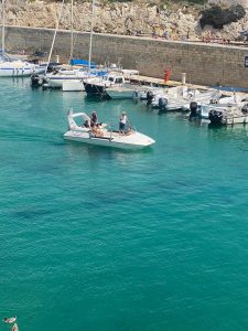 Si tratta di una barca accessibile che può ospitare fino a 6 persone, anche in carrozzina. Dal pontile si salirà sulla barca mediante una passerella dove si verrà accolti dall’equipaggio composto da uno skipper infermiere (in grado di dare all’evenienza anche assistenza sanitaria) e da un poliziotto in pensione con patente nautica.
