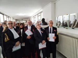 A partire dalle 9, i magistrati, come stabilito dalla delibera nazionale dell’Anm, prima di accedere nell’aula magna della Corte di appello del tribunale di viale de Pietro, si sono incontrati e sono state distribuite coccarde tricolori ed ognuno si è munito di toga e copia della costituzione.