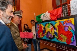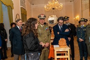 Alla presenza di Autorità civili e militari oltre che di una folta schiera di scolaresche, il Generale di Brigata Claudio Dei, Comandante della Scuola di Cavalleria, ha accompagnato Carlo Salvemini, Sindaco di Lecce, nel tradizionale taglio del nastro, dando il via alla presentazione dell’esposizione.