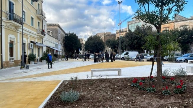 “Il quartiere San Lazzaro non ha mai avuto una vera piazza dove le famiglie, i ragazzi, gli anziani, i turisti possano sostare all’aperto, incontrarsi, dove le attività commerciali possano offrire servizi con i loro dehors – dichiara il sindaco Carlo Salvemini – con questo intervento, dunque, abbiamo risposto ad un bisogno espresso dalla comunità. Dove c’era ormai uno spartitraffico all’incrocio tra tre strade, dopo la dismissione della vecchia pompa da benzina, oggi c’è un’area pedonale che occupa un lato della piazza ed è arricchita da panchine e nuovo verde”.
