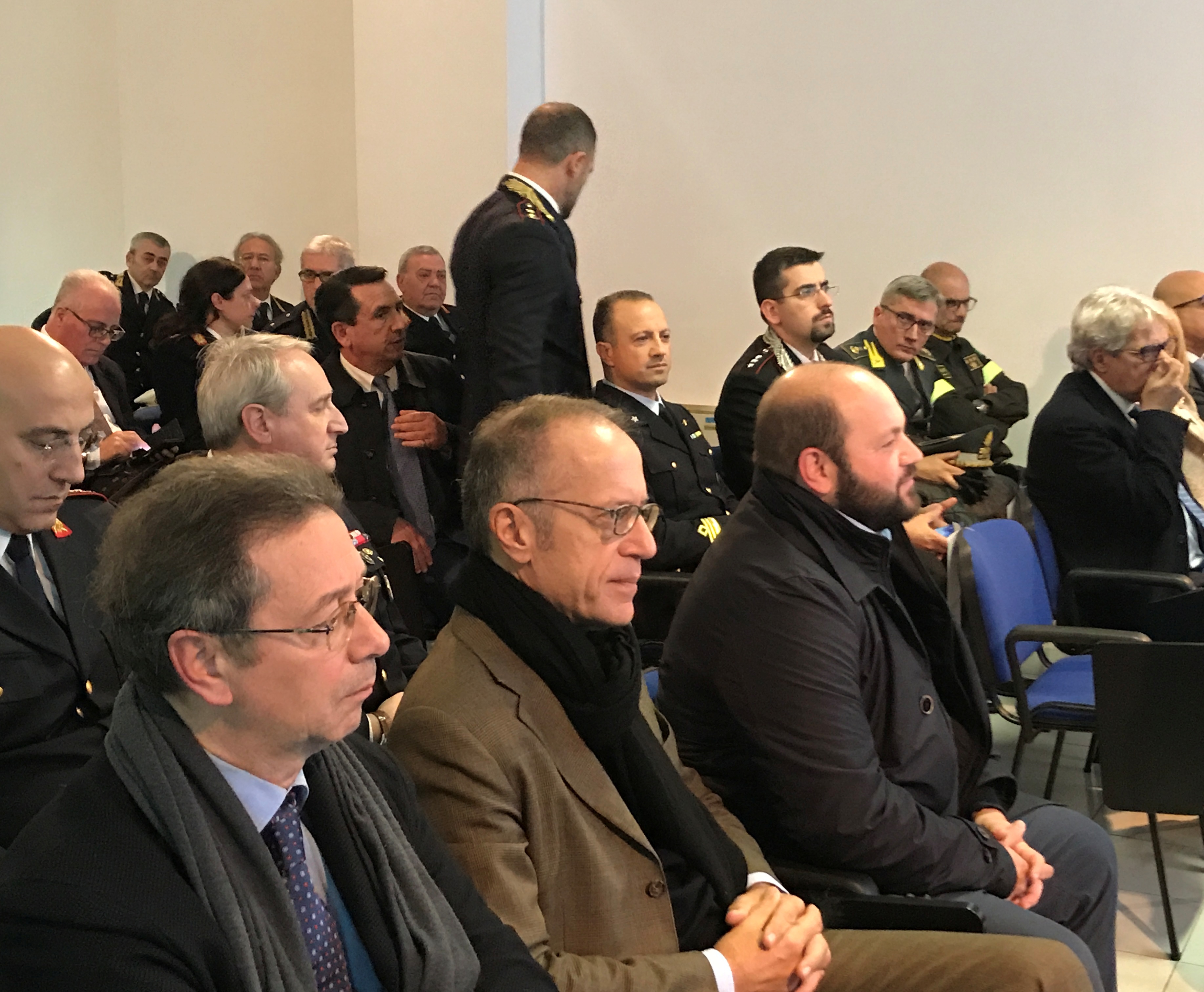 Numerose le personalità presenti alla cerimonia di inaugurazione tra loro si possono annoverare: il Prefetto di Lecce, Maria Teresa Cucinotta; Il Procuratore Generale di Lecce, Vincenzo Maruccia; i procuratori capo di Lecce e Brindisi, Leonardo Leone De Castri e Antonio De Donno; il Procuratore Aggiunto di Lecce, Guglielmo Cataldi; l’Assessore Regionale, Loredana Capone; il Presidente della Provincia, Stefano Minerva e il Sindaco, Carlo Salvemini.