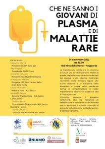 L’iniziativa è finalizzata a presentare il progetto “Plasmare”, che ha l’obiettivo di sensibilizzare e informare sulle malattie rare e avvicinare il mondo giovanile al tema del volontariato e della donazione di sangue e plasma.