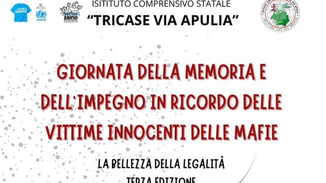 Nel contesto degli eventi dedicati alla ‘Giornata della memoria e dell’impegno in ricordo delle vittime innocenti della mafia’, l’Istituto Comprensivo “Tricase – Via Apulia”, guidato dalla dirigente scolastica Rina Mariano, si prepara ad accogliere la terza edizione de “La bellezza della legalità“. L’incontro, si svolgerà lunedì 18 marzo 2024, a Tricase, presso l’oratorio della Chiesa di Sant’Antonio da Padova, a partire dalle ore 9.30.