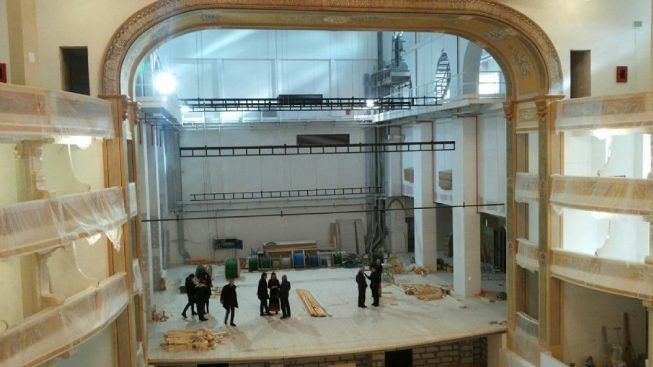 Già montati i preziosi lampadari che sovrastano la platea, provenienti da Murano. Tutti gli affreschi, i calchi, le decorazioni sono quelle originali, riportati alla luce da una sapiente attività di restauro.