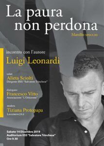 Domani, 14 dicembre, nell’ambito del percorso legalità voluto e organizzato dall’Associazione L’Orizzonte a Martano, Luigi Leonardi, ospite a partire dalle ore 9.30, dell’Istituto di Istruzione Secondaria Superiore “S.Trinchese”, presenterà il suo libro “La paura non perdona – Una vita sotto scorta tra Stato e camorra”.