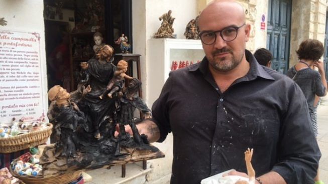 Se non è un vero e proprio mistero, poco ci manca. Quanto accaduto in una delle tradizionali botteghe che si affacciano su piazza Duomo non solo ha dell’incredibile, ma fa venire la pelle d’oca: la statua in cartapesta che un giovane cartapestaio leccese stava finendo di ultimare ha improvvisamente preso fuoco, tra le sue mani.
