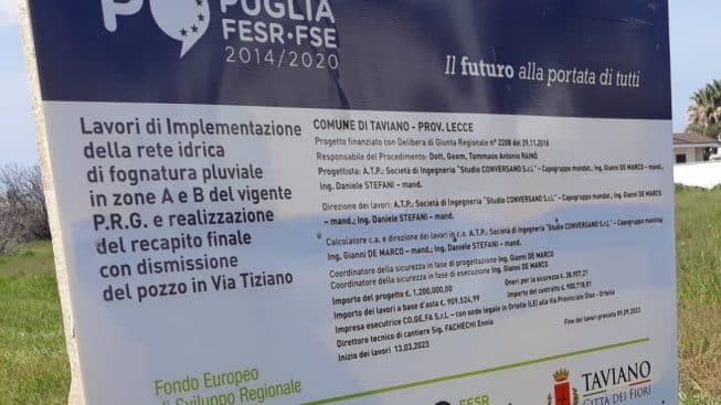 Si apre un nuovo cantiere a Taviano, quello per la realizzazione della fognatura bianca.