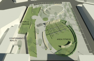 L’area più a nord del Parco, in prossimità delle palazzine Erp, sarà attrezzata come una grande area fitness (di circa 675 mq) disegnata in gran parte da una siepe, caratterizzata alle estremità da una fitta vegetazione con alberi di alto fusto (con nuove alberature). Saranno posizionate qui le macchine del fitness e attrezzi ginnici per il calisthenics e altri attrezzi fitness tipo stepper e passeggiata su pedali.
