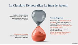 In sintesi, lo Speciale Lavoro di Aforisma si pone come uno strumento di analisi a supporto di istituzioni, imprese e parti sociali. Come ricordato da Andrea Salvati e ribadito nelle conclusioni di Ada Chirizzi, la sfida è culturale e politica: occorre dare valore a una formazione di qualità (soprattutto su IA e Green) e contrastare la precarietà per fare in modo che la Puglia sia una terra in cui le persone possano “scegliere di restare, tornare o voler andare” per scelta, e non per necessità.