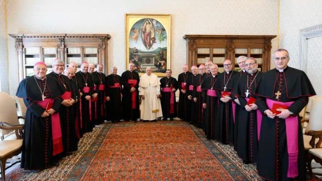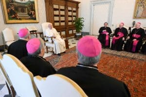 La conferenza episcopale pugliese da lunedì scorso è in visita “ad limina apostolorum” in Vaticano. Gli 8 arcivescovi e 11 vescovi della nostra regione hanno svolto numerosi incontri nei vari dicasteri della Santa Sede e oggi hanno chiuso la visita ufficiale con l’incontro nel palazzo Apostolico con il Sommo Pontefice Papa Francesco.