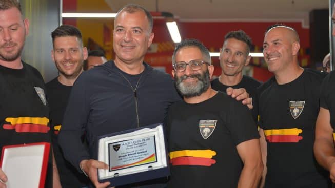 “La passione per questa squadra va oltre i confini del calcio, rappresenta la salentinità e l’amore immenso che questa gente ha per il suo Lecce”, sono state le parole che Lorenzo Ancora ha espresso davanti a un commosso Sticchi Damiani, ricordando anche la figura sempre presente Sergio Vantaggiato che, con le sue radiocronache, ha riempito le domeniche dei tifosi giallorossi, raccontando un calcio d’altri tempi, un calcio che non esiste più ma che continua, per i tifosi veri, a seguire un unico colore, il giallorosso.