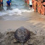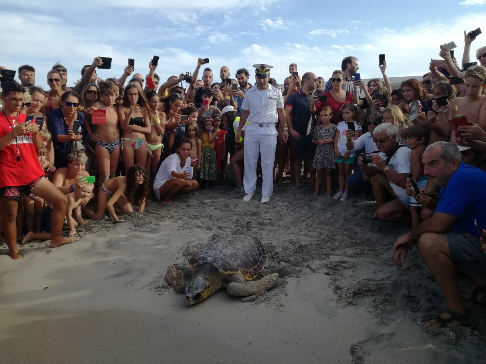 Il mare è quello della costa Adriatica, il lido è il Solero di San Foca ma a muoversi lentamente, incamminandosi verso “chiare, fresche e dolci acque” non è un turista o un bagnante qualsiasi ma un superbo e raro esemplare maschio di tartaruga della specie Caretta caretta del peso di 70kg.
