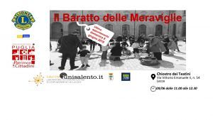 E’ in programma oggi, domenica 9 giugno, a partire dalle ore 11 – e fino alle 12.30 – l’ultimo appuntamento con #IlBarattodelleMeraviglie, la grande festa dei Lions dedicata alle famiglie. A fare da cornice lo splendido chiostro dei Teatini a Lecce.