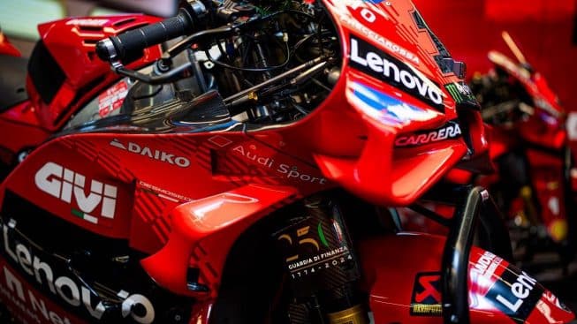 Ducati celebra i 250 anni della Guardia di Finanza con uno speciale omaggio: in occasione del Gran Premio d’Italia, le Desmosedici GP24 ufficiali del Ducati Lenovo Team, pilotate dal Campione del Mondo Francesco ‘Pecco’ Bagnaia ed Enea Bastianini, scenderanno in pista con uno sticker che riproduce il logo ideato per festeggiare la speciale ricorrenza.
