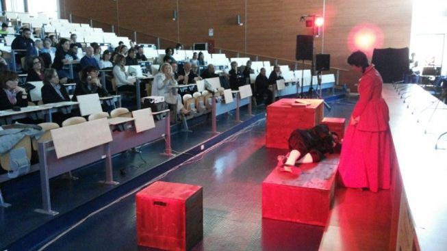 La rappresentazione, per la regia di Liliana Putino, è stata interpretata e messa in scena nell’aula magna della Facoltà di Giurisprudenza presso il campus universitario di Monteroni dalla compagnia teatrale Tèmenos recinti teatrali e ha riscosso grande apprezzamento da parte dei numerosi presenti.