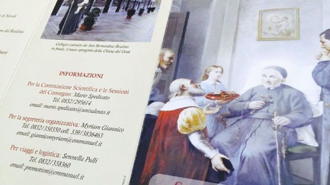 Domani invece, Venerdì 14 Ottobre, una vera e propria giornata di studio presso la Sala Conferenze del Rettorato – a partire dalle ore 9.00 – che vedrà pure la presenza di Padre Mario Marafioti (nell’occasione illustrerà i motivi conducenti all’organizzazione di un convegno su Padre Bernardino Realino). Saluti iniziali ad opera di Monsignor Domenico Umberto D’Ambrosio, Arcivescovo di Lecce; Vicenzo Zara, Rettore dell’Università del Salento; Paolo Perrone, sindaco di Lecce; Antonio Gabellone, Presidente della Provincia di Lecce. La relazione introduttiva toccherà a Padre Marc Linderijer dal titolo “Un santo arrivato troppo tardi?”; spazio anche ad una serie di interventi – divisi in due sessioni – cominciando da Luisa Cosi del Conservatorio di Musica leccese.