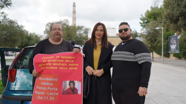 Tante le iniziative a Lecce e nel Salento in occasione della giornata internazionale contro la violenza sulle donne, a cominciare da quelle che si sono svolte alla Scuola Media ‘Ascanio Grandi’ con la partecipazione della Polizia di Stato e dei sindacati Cgil, Cisl e Uil (in cui, alla presenza della mamma di Noemi Durini, sono state intitolate sei panchine rosse ad altrettante vittime di recenti femminicidi avvenuti in Puglia) e all’Istituto ‘Grazia Deledda’ con la presentazione della campagna di sensibilizzazione ‘A Teasta Alta’. Ma non è passata inosservata la manifestazione che, alla presenza della Consigliera di Parità della provincia di Lecce, Filomena D’Antini Solero, hanno organizzato le associazioni Pronto Soccorso dei Poveri e Salento Rinasce in memoria di Adelina.