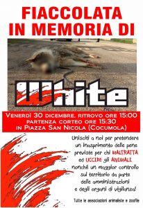 Va ricordato che i volontari si sentono spesso lasciati soli in queste battaglie di civiltà, spesso considerati un peso per le amministrazioni coinvolte da episodi del genere. Tanta la partecipazione nell’affollata fiaccolata e non sono mancate parole di dolore per l’accaduto: ‘Ogni giorno consultiamo i social e leggiamo di animali uccisi e abbandonati. Possibile che ci sia tanta disumanità nei confronti di questi esseri viventi? Guardate quanti siamo…Ci sarebbero dovute essere tante persone a piangere White e invece siamo pochi. Dove sono tutti gli altri?‘