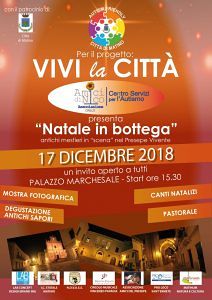 Il progetto verrà presentato domani pomeriggio alle 15:30 in “Natale in bottega”, all’interno del Palazzo Marchesale, una “ouverture” – secondo Maria Antonietta Bove, presidente del Centro –“di un evento sociale all’interno delle festività natalizie che rappresenta per noi il modo migliore per augurare alle famiglie, agli amici e a tutta la comunità il nostro più grande augurio di buon Natale e buona vita per tutti”.