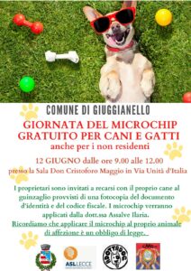 È prevista per domenica 12 giugno l’iniziativa degli amministratori del Comune di Giuggianello che hanno deciso di dare a tutti gli amici a quattro zampe e soprattutto ai loro proprietari un’occasione per migliorare la loro sicurezza. Dalle 9 alle 12, infatti, presso la sala Don Cristoforo Maggio in via Unità d’Italia, i cittadini di Giuggianello ma anche i non residenti dei paesi limitrofi potranno microchippare gratuitamente il proprio cane.