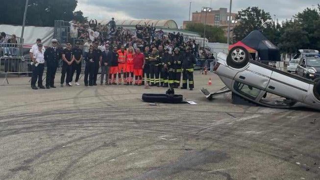 Nel primo incidente, è stato realizzato uno scontro tra un’auto condotta da un pilota ed uno scooter con in sella un manichino con il casco slacciato. L’impatto ha fatto vedere come il manichino abbia perso il casco che si è sfilato subito dalla testa, con gravissime conseguenze per il motociclista. Il secondo sinistro era identico ma questa volta il manichino aveva allacciato il casco che, nello scontro, è rimasto sulla testa del motociclista e quindi, in caso di incidente è stato fatto notare che avrebbe potuto salvare la vita, anche se il malcapitato avrebbe subito diverse fratture. Nel terzo esempio, protagonista è stata una macchina che si è cappottata, c’è stato l’intervento di primo soccorso con chiamata di emergenza, l’ arrivo della polizia municipale, dei vigili del fuoco e degli operatori sanitari, per le operazioni di decarcerazione del conducente dell’auto.