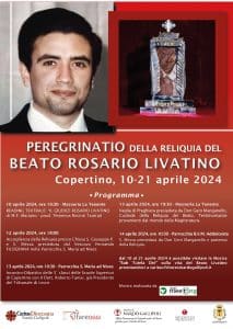 La reliquia giungerà a Copertino il 12 aprile alle ore 18:00 nel piazzale antistante la chiesa di San Giuseppe Patriarca e alle ore 19:00 il Vescovo della Diocesi di Nardò-Gallipoli, Mons. Fernando Filograna, presiederà la celebrazione eucaristica nella Parrocchia Sancta Maria ad Nives. In questi giorni sono stati organizzati momenti di riflessione con le scuole e con i giovani della città e della Diocesi con testimonianze assai importanti da parte di Magistrati impegnati attivamente nella lotta alla criminalità organizzata e provenienti dal mondo cattolico.