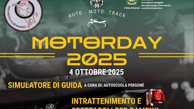 L’Asd Moto Club Nardò, Con il Patrocinio del Comune di Nardò – Consigliere Delegato allo Spettacolo, Commercio e Attività Produttive, organizza il ‘Motorday 2025′.