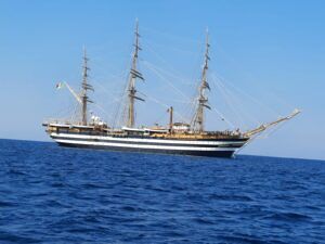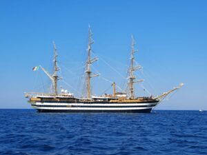 Si è fermata dietro l’Isola dei Conigli”, con queste parole, Silvia Tarantino, Sindaco di Porto Cesareo, ha commentato l’arrivo a sorpresa, nella giornata di ieri nella località rivierasca dell’Amerigo Vespucci, la nave scuola della Marina Militare Italiana.