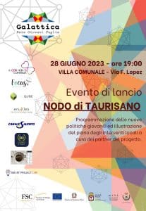 “Il nostro Comune è tra i primi, insieme a Gallipoli, Bitonto, Ruffano, Arnesano, Gravina e Stornarella ad inaugurare il suo nodo Galattica. – spiega l’assessore alle politiche giovanili del Comune di Taurisano Quintino Rizzello. Le attività si svolgeranno in un luogo simbolo di Taurisano: casa Vanini. È qui che la nostra città metterà al centro i giovani, rafforzando il legame tra i territori, i comuni, e le associazioni giovanili, offrendo alle fasce più giovani della cittadinanza ciò di cui hanno bisogno secondo quanto espresso nei numerosi momenti di incontro e confronto”.