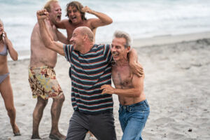 Tre vite lontanissime che si incontrano accidentalmente in una piccola isola della costa italiana: stessa spiaggia, stesso mare ma, soprattutto, stessa casa in affitto. Lo scontro è inevitabile e spassosissimo: abitudini diverse, due figli che si innamorano, tre mogli che partono col piede sbagliato, ma finiscono per ballare insieme in una sera d’estate e tre nuovi amici alla ricerca di un figlio in fuga.