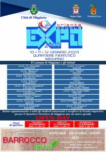 Una forte vocazione turistica che vuole includere anche i ragazzi per guardare al futuro del territorio. È il comune di Miggiano, con il patrocinio della Regione Puglia e della Provincia di Lecce, ad organizzare “Expo orienta scuola”, l’evento in 3 giornate che porta avanti una missione importante. Sarà il quartiere fieristico ad ospitare l’appuntamento previsto per il 10, 11 e 12 gennaio.