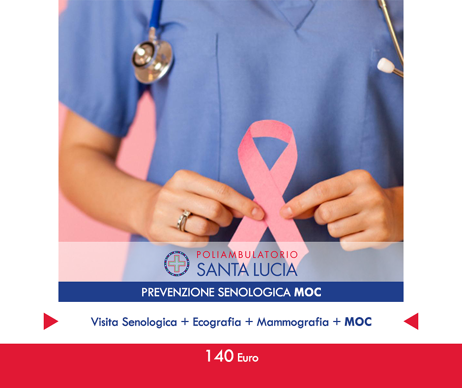 La prevenzione senologica inizia quando le donne imparano ad avere confidenza con il proprio corpo. Nel pacchetto offerto dal Poliambulatorio Santa Lucia è compresa una visita senologica, l’ecografia, la mammografia e il Moc.