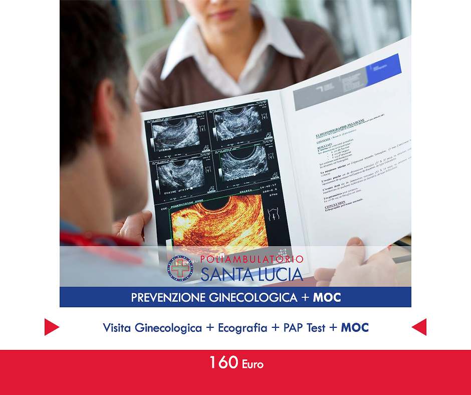 C’è la prevenzione ginecologica, importantissima per le donne. Nel pacchetto è compreso anche il Pap-test, un semplice, ma fondamentale esame che permette di individuare precocemente eventuali tumori del collo dell’utero. Non solo, sottoporsi ad una visita ginecologica è fondamentale per valutare le condizioni di salute degli organi genitali esterni e interni, per questo andrebbe eseguita con una certa regolarità.