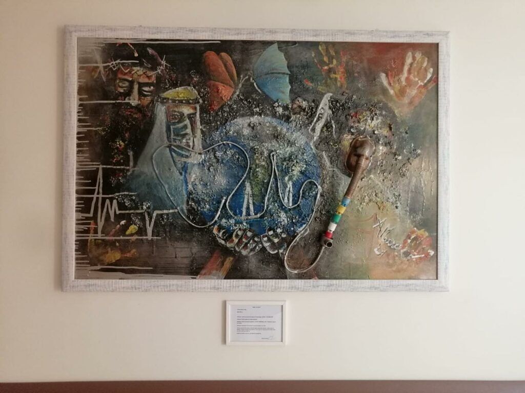 «Dopo la guarigione dal Covid e aver ripreso lucidità e salute ho deciso che avrei realizzato un quadro per dedicarlo a tutti quegli operatori stupendi che hanno aiutato me e altri pazienti a superare giorni difficili e a guarire. Lo dedico a tutti gli OSS, infermieri, medici, a tutti i collaboratori della Terapia intensiva Dea e della Pneumologia Covid Dea Fazzi di Lecce. Lo dedico a loro – ha raccontato l’autore della tela realizzata con una tecnica mista – per arrivare a tutti i lavoratori del settore, anche al di fuori delle strutture ospedaliere, a chi lavora nelle cliniche, a chi assiste i malati in casa, a chi si prende cura degli altri».