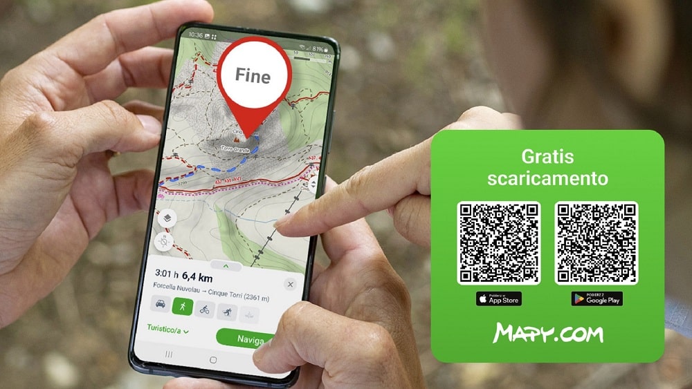 nell’applicazione Mapy.com. È possibile creare qualsiasi percorso inserendo la partenza e la destinazione del percorso nella funzione Indicazioni, oppure aggiungere punti di interesse lungo il percorso facendo clic sui punti della mappa. Può essere salvato in una cartella a cui si dà un nome e che poi si trova in Mio Mapy