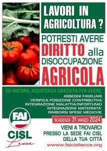 C’è tempo fino al 31 marzo 2024, per fare domanda e richiedere la disoccupazione agricola.