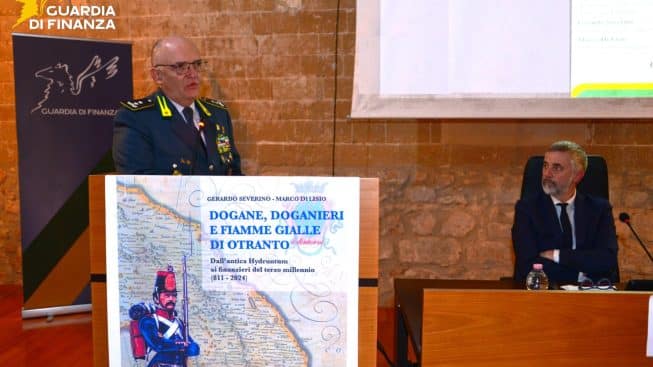 Mercoledì 11 febbraio 2026, presso il Castello Aragonese di Otranto, alla presenza del Comandante Regionale Puglia della Guardia di Finanza, Generale di Divisione Guido Mario Geremia, del sindaco della città idruntina, Francesco Bruni e delle massime Autorità locali civili e militari, è stato presentato il libro “Dogane, Doganieri e Fiamme Gialle di Otranto”, scritto dal Colonnello (in ausiliaria) Gerardo Severino, già Direttore del Museo Storico del Corpo e dal Luogotenente Marco Di Lisio della Compagnia di Otranto.