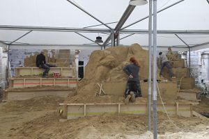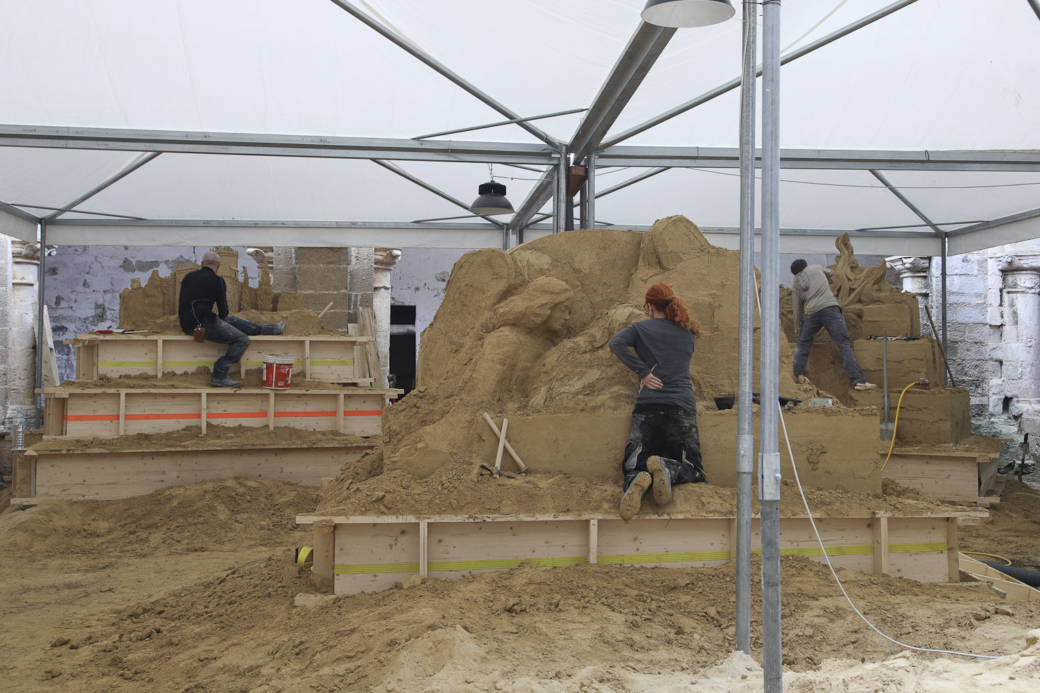 Se Ugolini con piccone e scalpello sta lavorando al villaggio di Betlemme, Enguerrand David sta scolpendo la scena dei Re Magi che seguono la stella cometa, infine Marielle Heessels si sta concentrando sulla Natività.