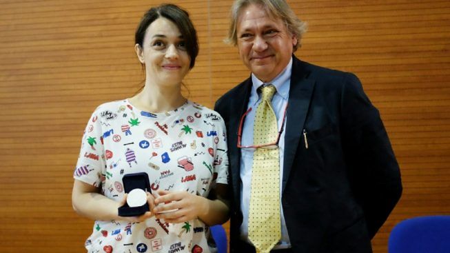 Un “antipasto di Taranta” graditissimo dagli studenti. Carmen Consoli ha infatti ricevuto il sigillo dell'Università del Salento da parte del prorettore Domenico Fazio. Si tratta di un simbolo realizzato dal gruppo di ingegneria dei materiali che l'ateneo salentino ha voluto consegnare all'artista siciliana, maestra concertatrice de “La Notte della Taranta” edizione 2016 a testimonianza dell'impegno e dell'intensità con cui la cantautrice si è avvicinata a questo nuovo ruolo in terra salentina, oltre che per la sua attività. E il docente di storia del jazz, Gianfranco Savatore ,ha proposto una laurea honoris causa per la cantautrice siciliana. "Sono molto emozionata", così Carmen Consoli, ha esordito nel corso della lezione che ha tenuto questo pomeriggio all'Università del Salento davanti agli studenti del corso di laurea di storia del jazz.