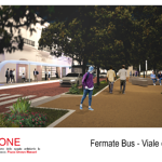 Gli spazi carrabili saranno completamente separati dai flussi pedonali. Oltre alla corsia di marcia è stata ricavata una corsia per il Kiss&Ride (area di carico-scarico max 5 minuti utilizzabile anche dai mezzi di trasporto turistico collettivo privato).