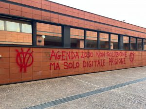 Un no senza se e senza ma all’ agenda digitale 2030 che a loro dire schederebbe i cittadini asservendoli al sistema. E con questa accusa contorta gli anarchici nella notte tra il 18 e il 19 di ottobre hanno pensato bene di imbrattare l’Ufficio Anagrafe del Comune di Lecce in Viale Aldo Moro, nel quartiere Stadio.